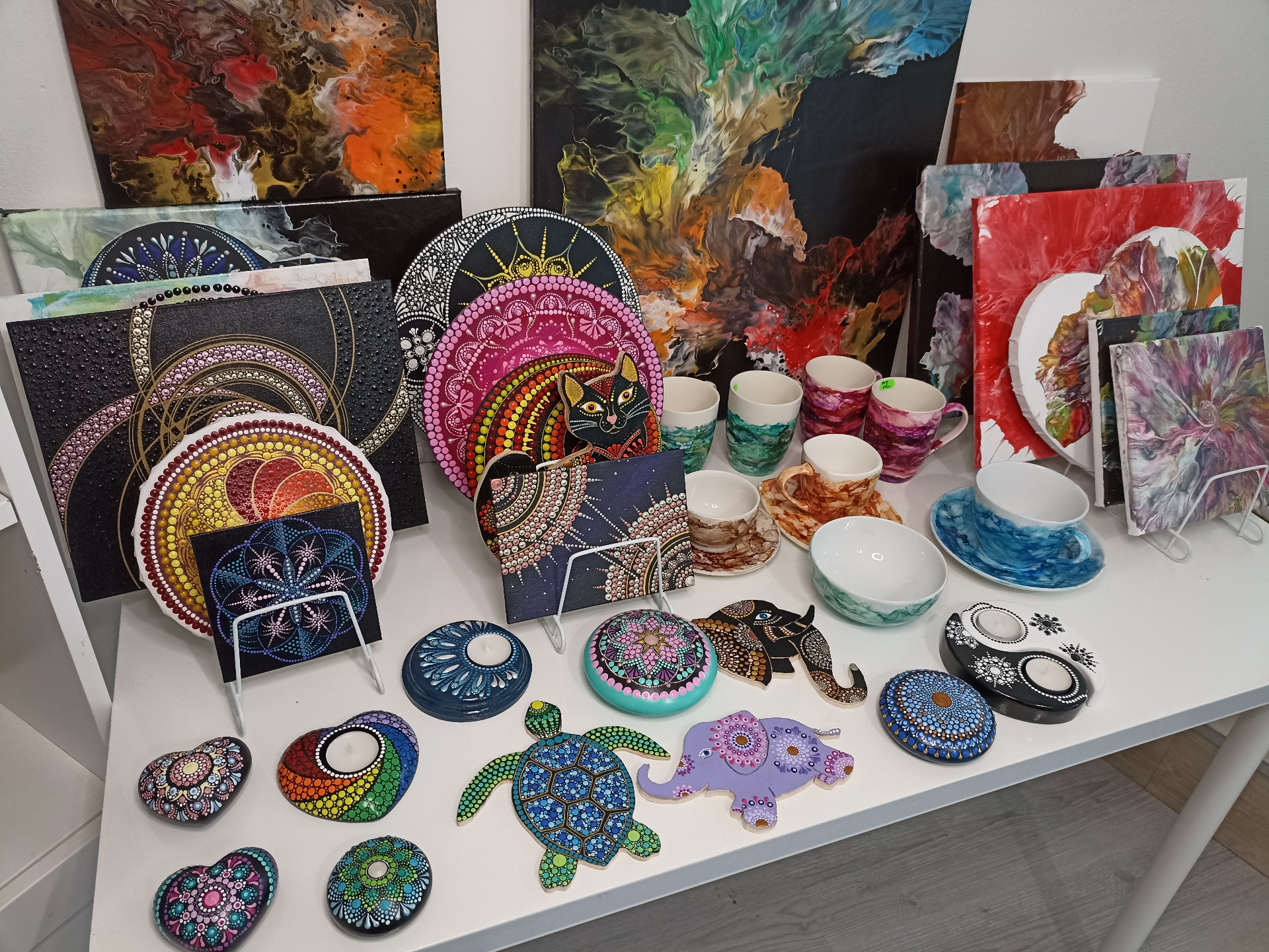 Kromě nehtového designu se věnuji i malbě a to v několika formách. Vytvářím energetické obrazy dle přání a potřeb zákazníka metodami Dot Art, Fluid Art a Enkaustika. V mé nabídce najdete i krásně zdobenou keramiku, která zkrášlí vaši kuchyni a při popíjení čaje či kávy vám navodí příjemnou relaxační atmosféru.